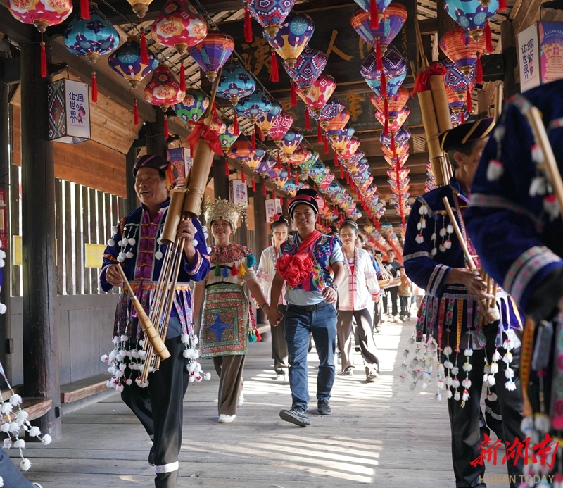 The photos taken on October 6 show tourists experiencing Dong wedding customs in Huangdu Village, Pingtan Township, Tongdao Dong Autonomous County, Huaihua City. During the National Day holiday, the village launched various activities such as colorful ethnic costume shows, rowing threshing buckets, catching ducks, and Dong wedding shows, attracting many tourists.