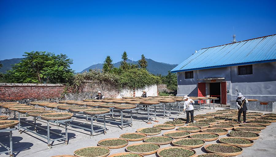 Villagers were busy drying traditional Chinese medicinal materials used in Yao medicinal baths at a processing workshop in Suocheng Village, Lanshan County on August 7.