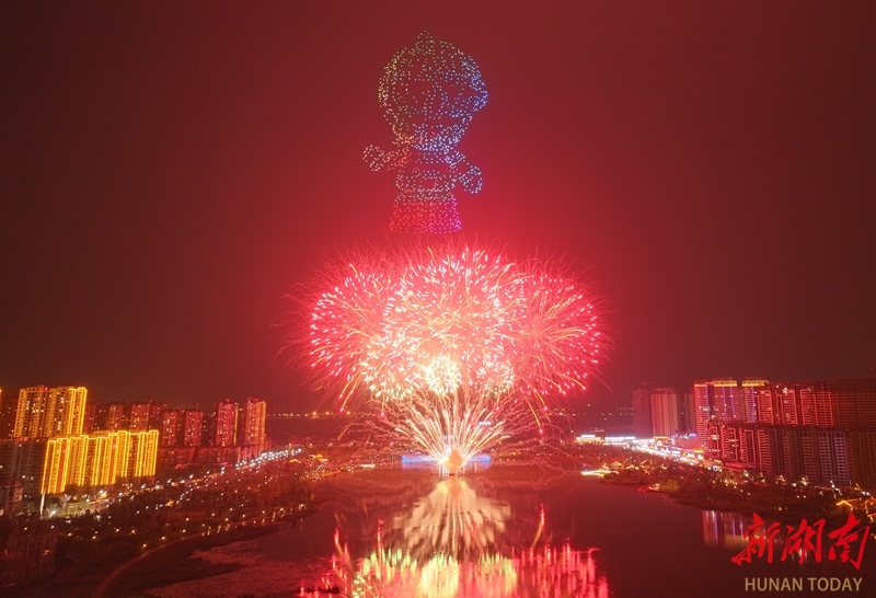 The photos taken on the evening of September 21 show a drone and fireworks show over the Linghu Park in Hengyang City. On that day, the opening ceremony of the 3rd Hunan Tourism Development Conference was held in Hengyang City.
