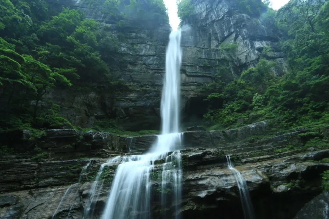 Shennong Waterfall is the most spectacular waterfall among the many waterfalls in Shennong Valley, with a drop of 235.2 meters. It is the waterfall with the largest drop in Hunan Province.
