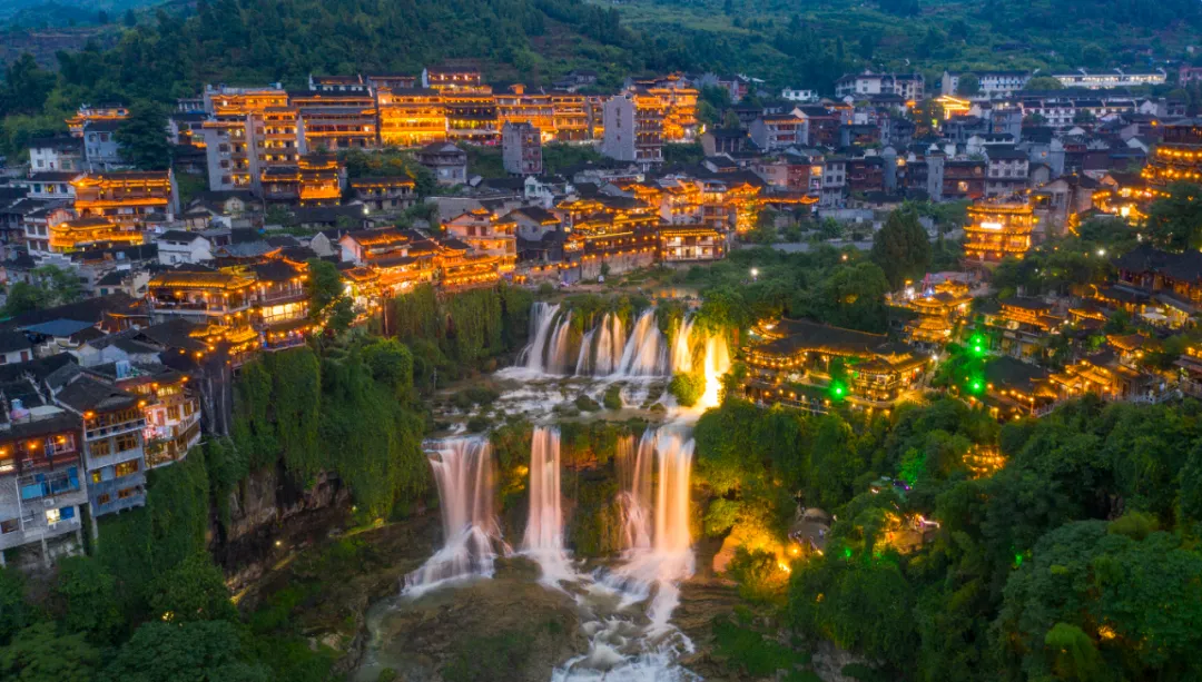 Furong Town Waterfall is located in Furong Town, near the core of the Youshui River. It is more than 20 meters wide, and about 30 meters high. Some people say Furong Town is a millennium-old town hanging on the waterfall. Visitors can pass through the waterfall into Tujia stilted buildings, which is very mysterious.