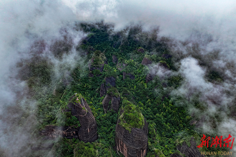 The photos taken on June 12 show the magnificent Danxia peak forest in various shapes at the Wanfo Mountain National Geopark in Tongdao Dong Autonomous County, Huaihua City.
