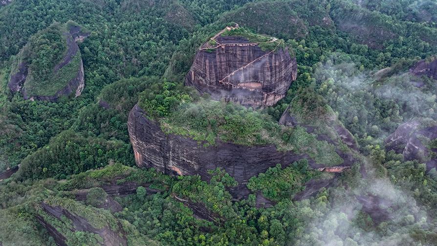The photos taken on June 12 show the magnificent Danxia peak forest in various shapes at the Wanfo Mountain National Geopark in Tongdao Dong Autonomous County, Huaihua City.