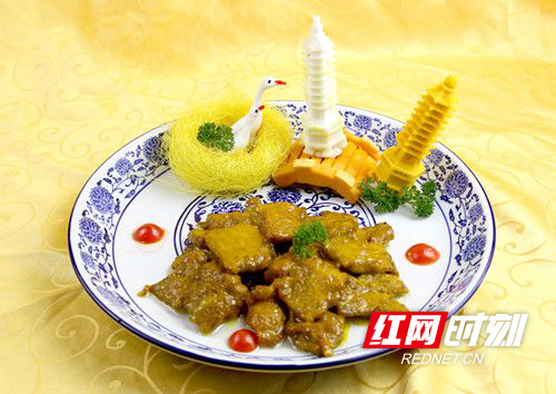 The soup of this dish is slightly sour, sweet and aromatic. It is crisp on the outside and tender on the inside, full of petty bourgeois sentiment. To commemorate this cross-border romance, the third-generation catering inheritor of Wugang specially carved two pagodas as decorations when cooking this dish, making this dish boast more profound cultural connotation and become one of the classics of the Wugang Goose Banquet.
