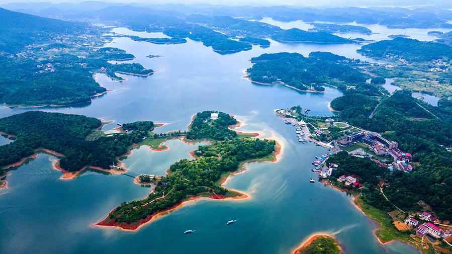 The photos taken on April 26 show tourists visiting the water area of Shuifu Temple Reservoir in Xiangxiang City.