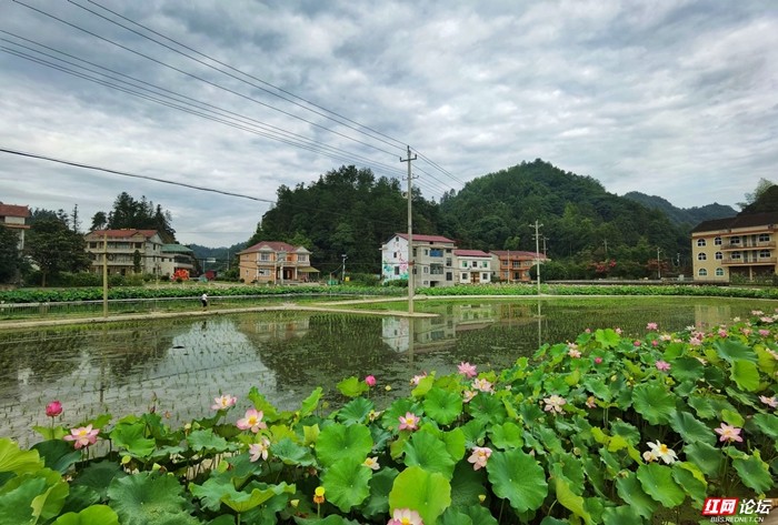 The photos taken on July 6 show beautiful rural scenery in Maoyuan Village, Tianzhuang Township, Anhua County, Yiyang City, where the lotuses are in full bloom and the rice seedlings in the paddy fields are growing very well. The graffiti wall also add a touch of color to the village.