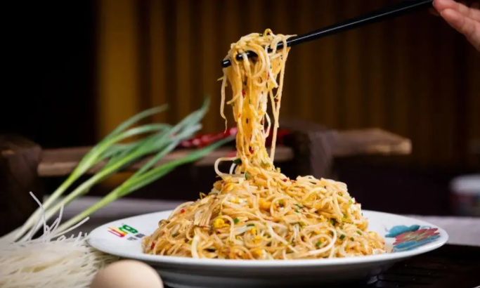Liling fried noodles are typical in Liling City, Zhuzhou City, Hunan Province. They are made out of rice, crystal sprouts and fired eggs, with a golden color and a tender and elastic taste.
