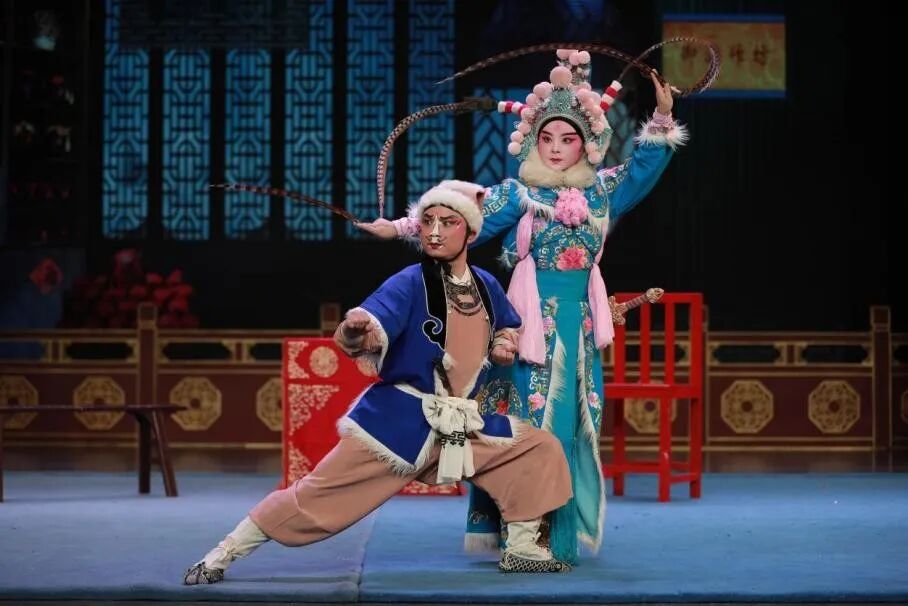 該劇的表演涵蓋生、旦、凈、末、丑全行當(dāng)體系,李三娘、劉智遠(yuǎn)以唱腔見長,小將軍劉承佑作為娃娃生行當(dāng)代表,需唱做并重,通過唱舞結(jié)合塑造靈動可愛的孩童形象。表演中融入現(xiàn)代舞蹈元素,在傳統(tǒng)程式基礎(chǔ)上增添活潑童趣,完整呈現(xiàn)了湘劇表演程式的精髓。