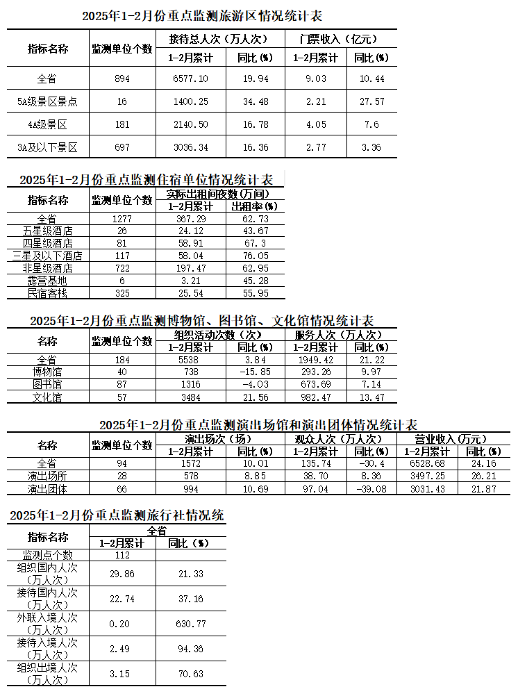 2025年1-2月份重點監(jiān)測旅游區(qū)情況統(tǒng)計表